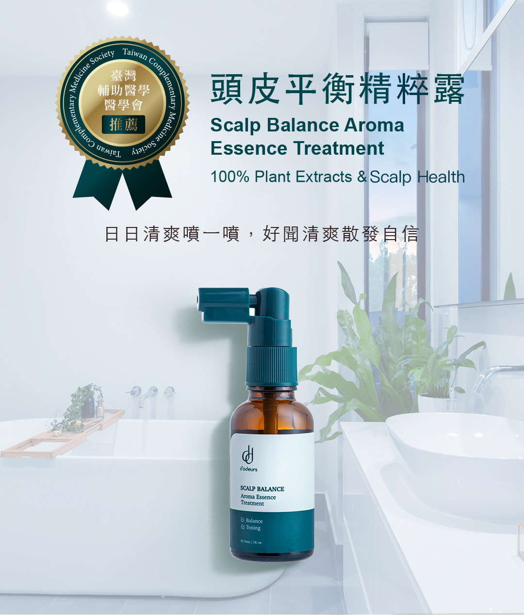 - 香氣印象:自然芬芳帶有微涼草本氣息,一噴即感受乾淨、清透的頭皮狀態
